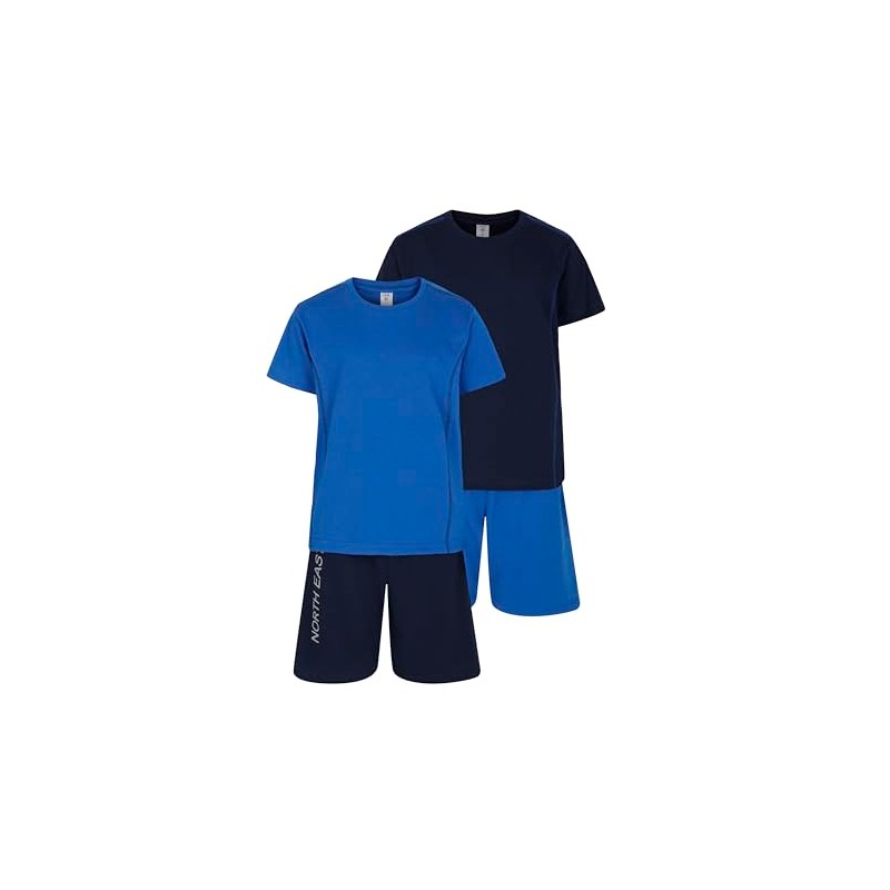 - Contrast Colors: Each set includes two pyjamas in contrasting colors for a stylish look. Comfortable Design: Featuring a crew neck top and fully elasticated waistband shorts for ultimate comfort & brand print.