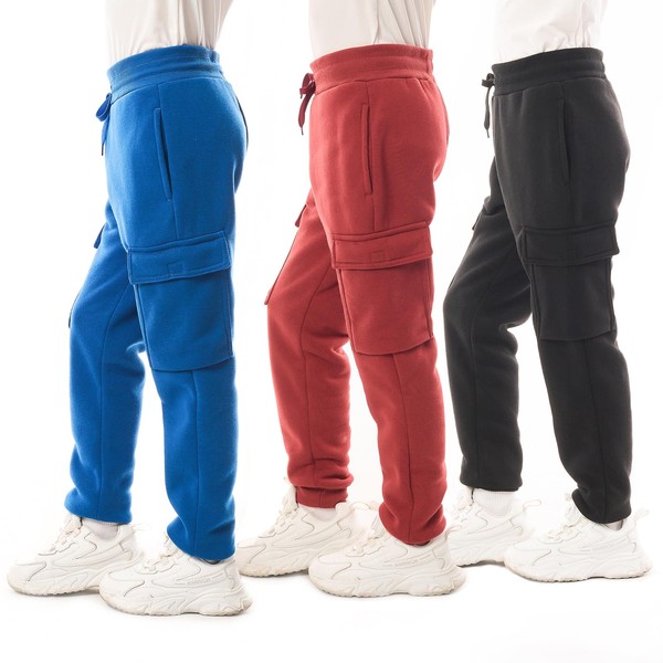 Boys 3-Pack Fleece Active Athletic Workout Jogger Pants with Cargo Pocket and Drawstring