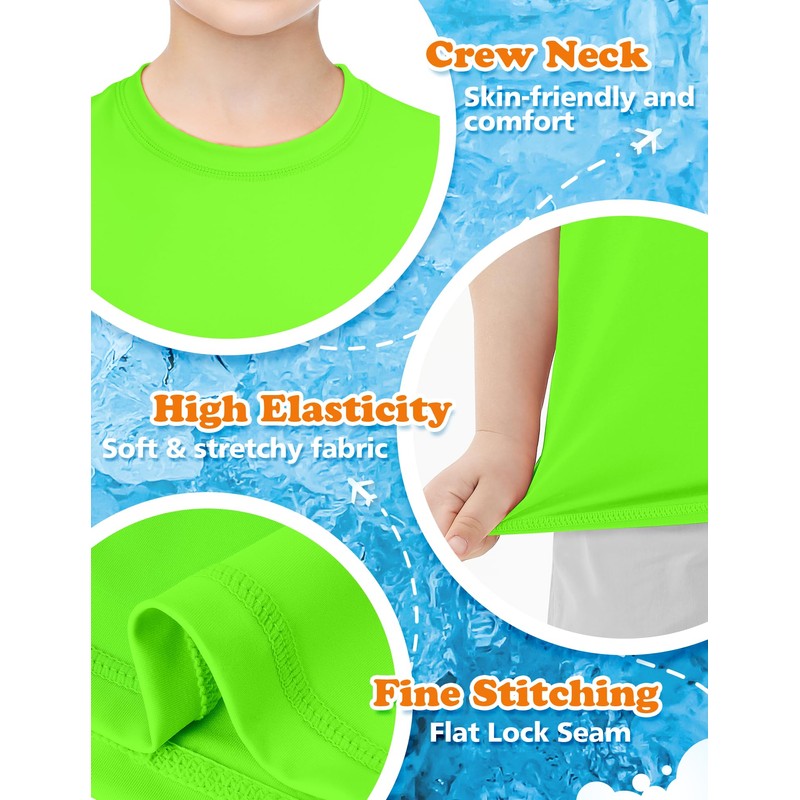 - This boys summer rash guard comes in various sizes, suitable for children of different ages and heights. EASY TO MANAGE: Our child boys shirts are wrinkle-resistant, shrink-proof, colorfast, and easy to manage