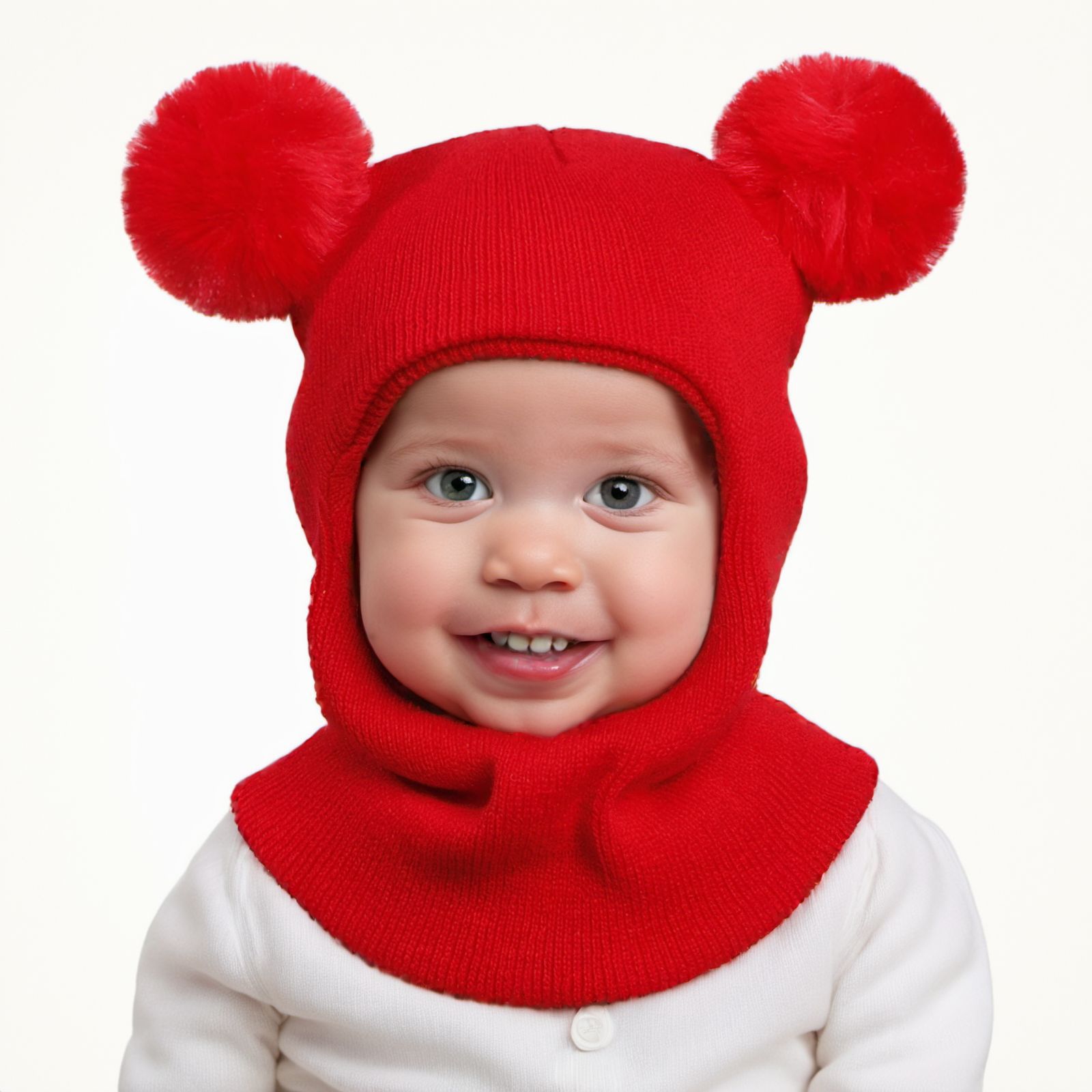 Boys' Balaclava Fall/Winter Pullover Knit Hat and Baby One-Piece LF1427 Free Size/Free Size SCB - Red [Red] 4ea