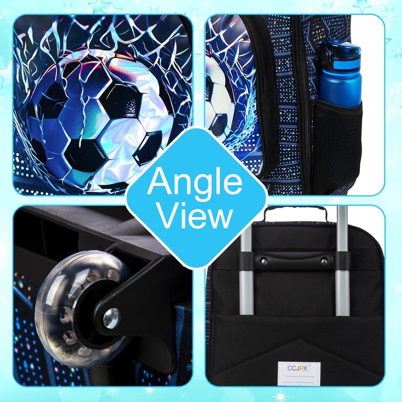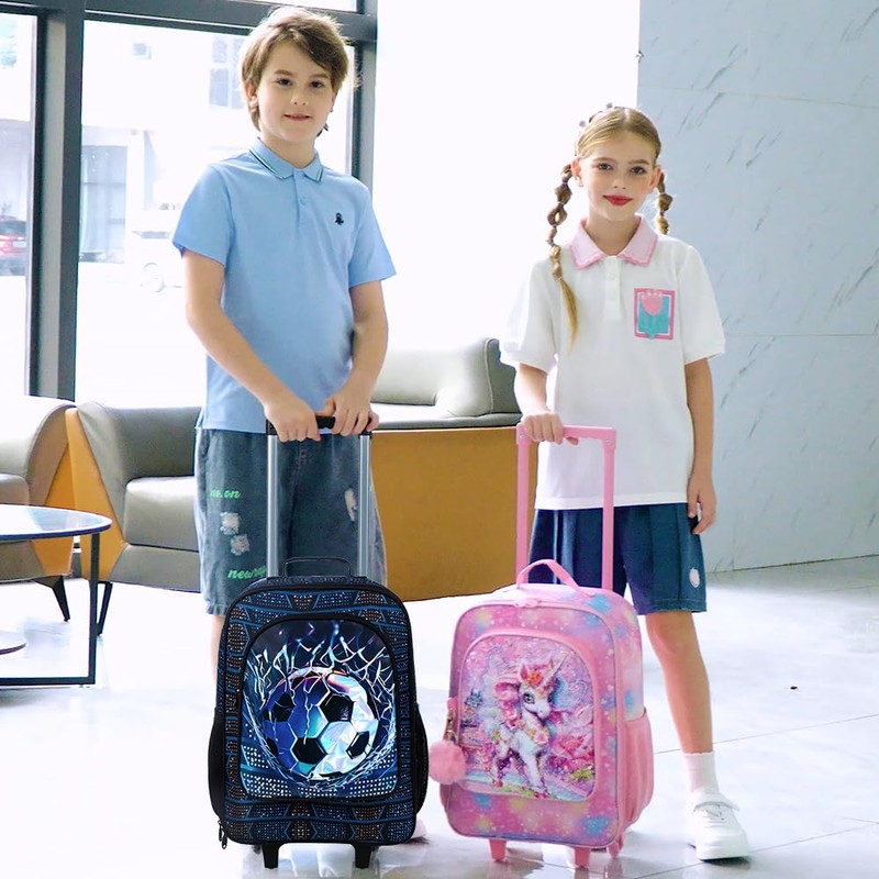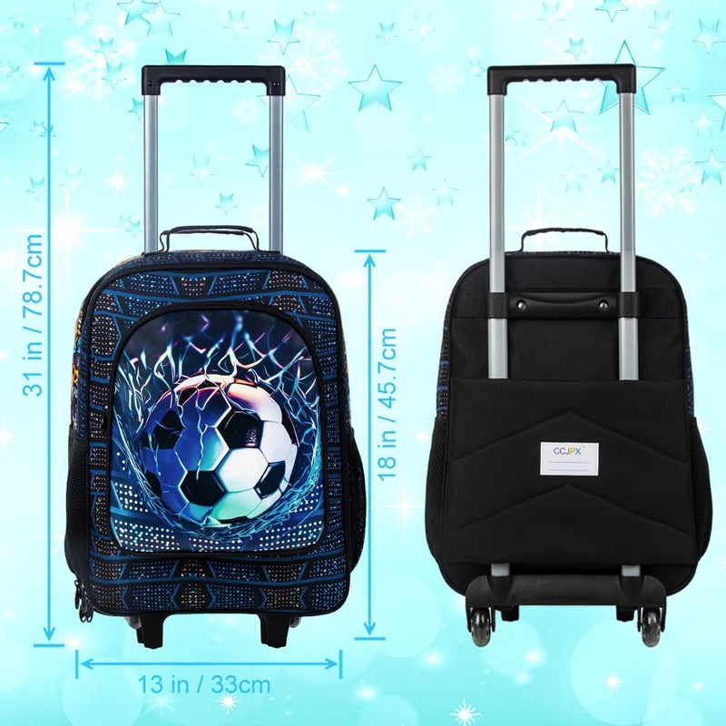 Boys Luggage, Kids Water Resistant Rolling Suitcase, Cool Soccer Travel Carry on for Elementary Preschool Toddler