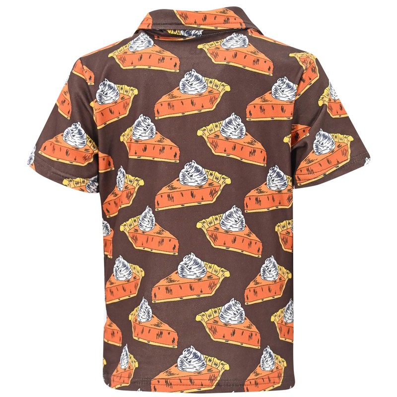 - PUMPKIN PIE: This collared polo Thanksgiving shirt for boys features a repeating pumpkin pie print that is perfect for all of pumpkin spice season fall and of course for Thanksgiving!