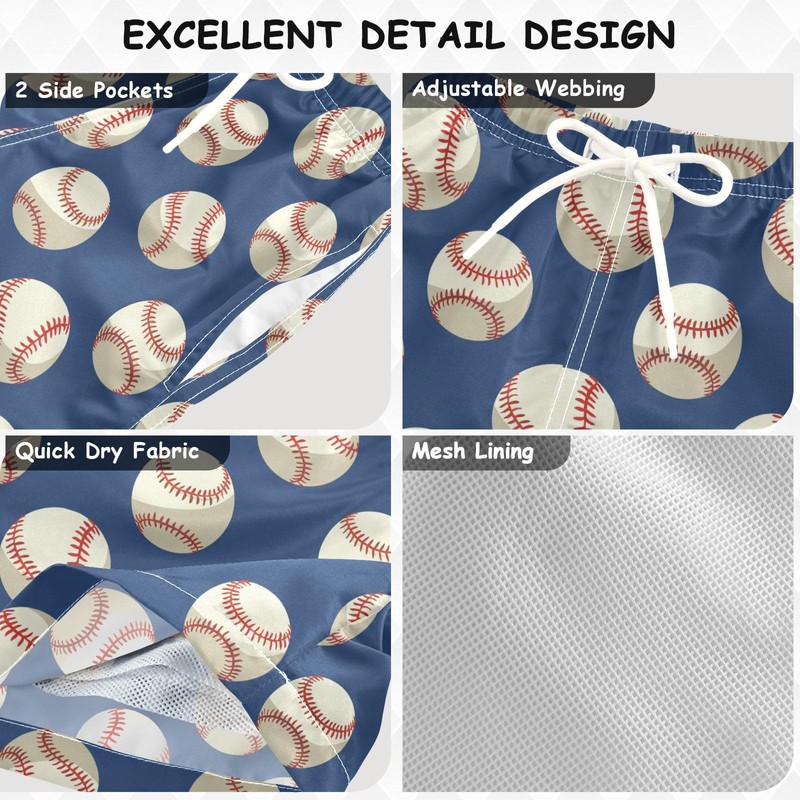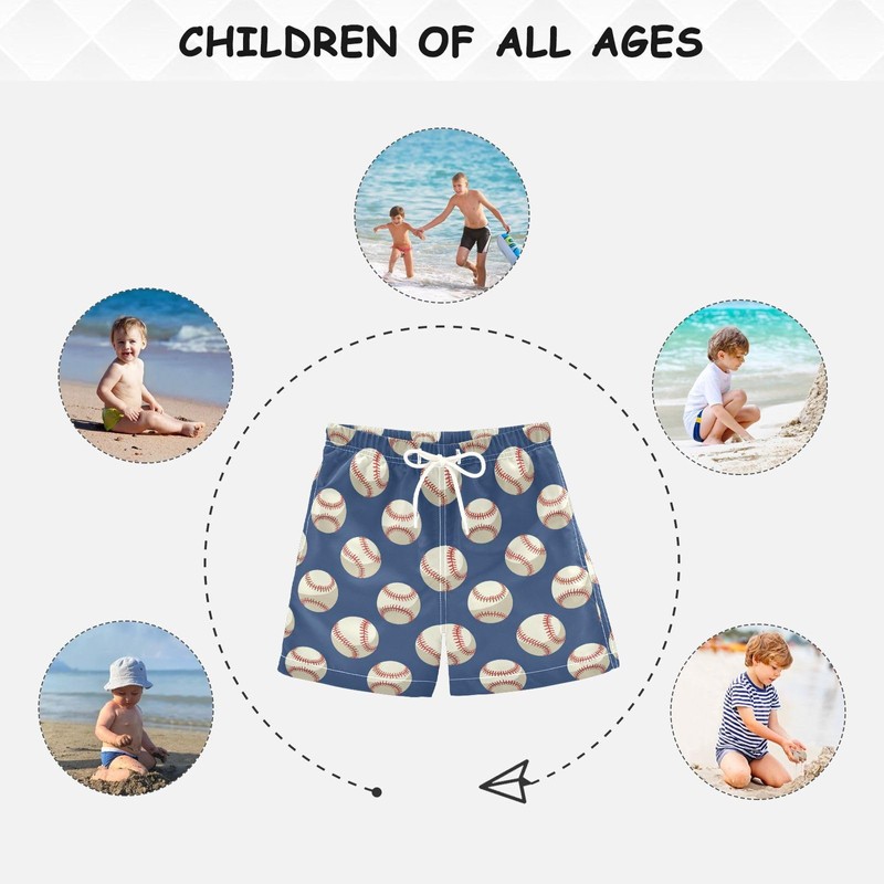 Boys Swim Trunks Baseballs Ball on Blue Beach Board Shorts Quick Dry Swimsuit Toddler Kid Teen