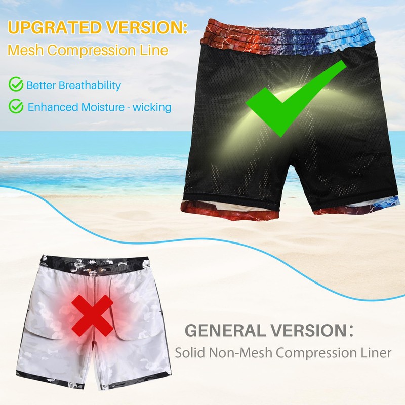 • 【Stretchy Compression Liner for Maximum Comfort&Support】Experience ultimate comfort with our built-in compression liner, designed to reduce muscle fatigue and chafing during intense activities like swimming, surfing, or water sports. The breathable mesh panels allow air circulation, keeping him cool and dry even during extended wear. Crafted with 24-way stretch technology, these swimming trunks for boys move with your child’s every action, offering unrestricted flexibility.