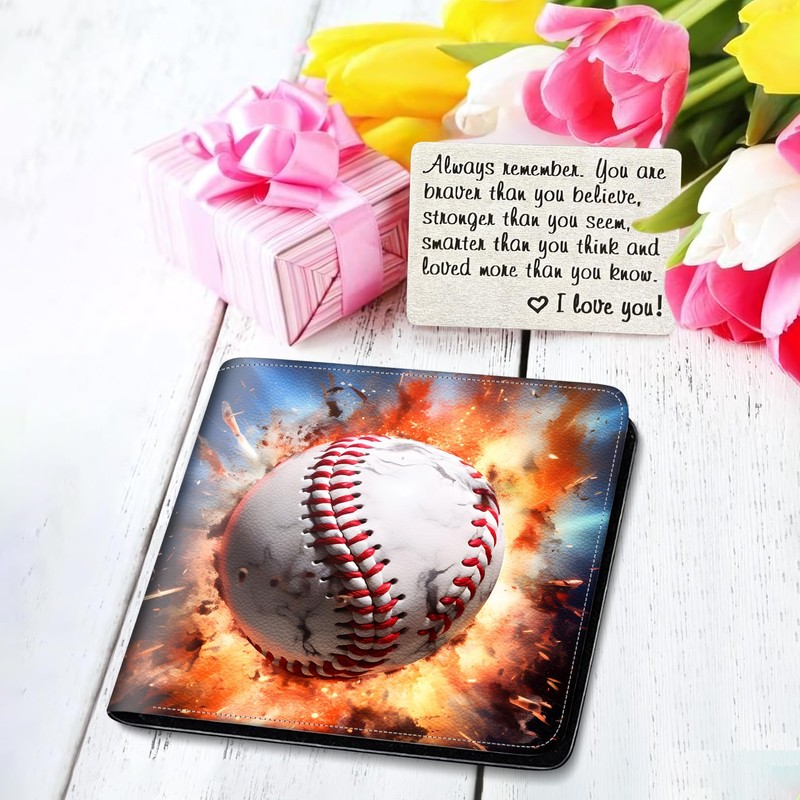 Boys Wallet for Kids, Teen Boy Baseball Wallets 9-12 8-10 8-12, Cool Novelty Leather Bifold Rfid Blocking Purse Coin Pocket Zipper Id Window for Children Men Male Youth Guys Birthday Christmas Gifts