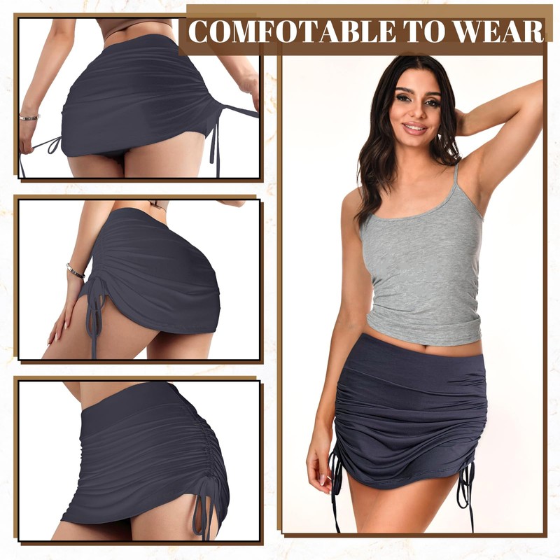 BOYSSPAA Women's Mini Skirt Side Drawstring Grey Skirt with Shorts High Waisted Stretchy Ruched Bodycon Pencil Skirts (UK, Alpha, L, Regular, Regular, Grey)