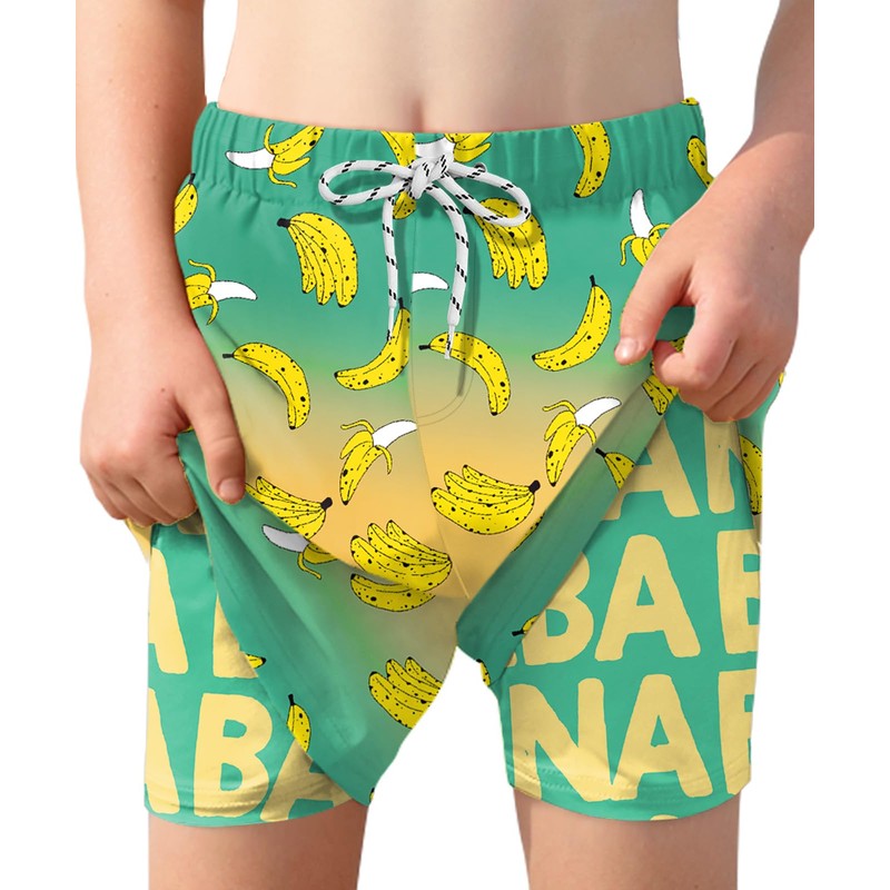 BoysSport Beach Quick DryDrawstring Board ShortsYellow Green BananaSwim Trunks10 Years