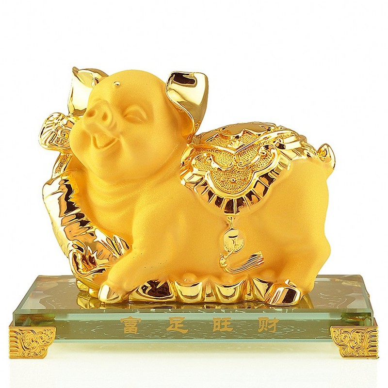 BOYULL Chinese Zodiac Pig Golden Resin Collectible Figurines Table Decor Statue