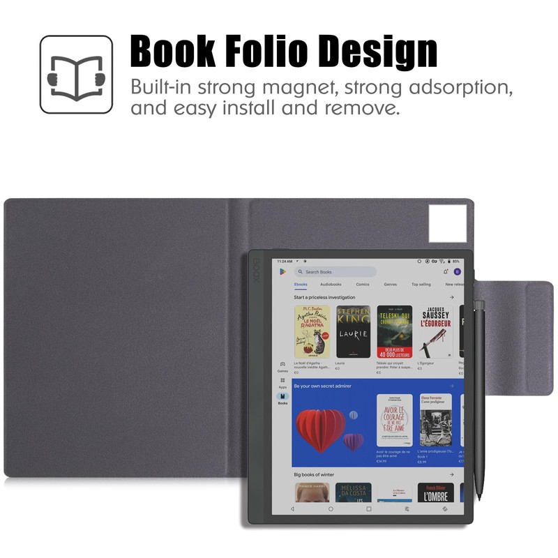 - [Auto Sleep/Wake]: the Boox Tab Ultra C Pro magnetic cover supports automatically wake up or put your device to sleep when you open or close the lid.