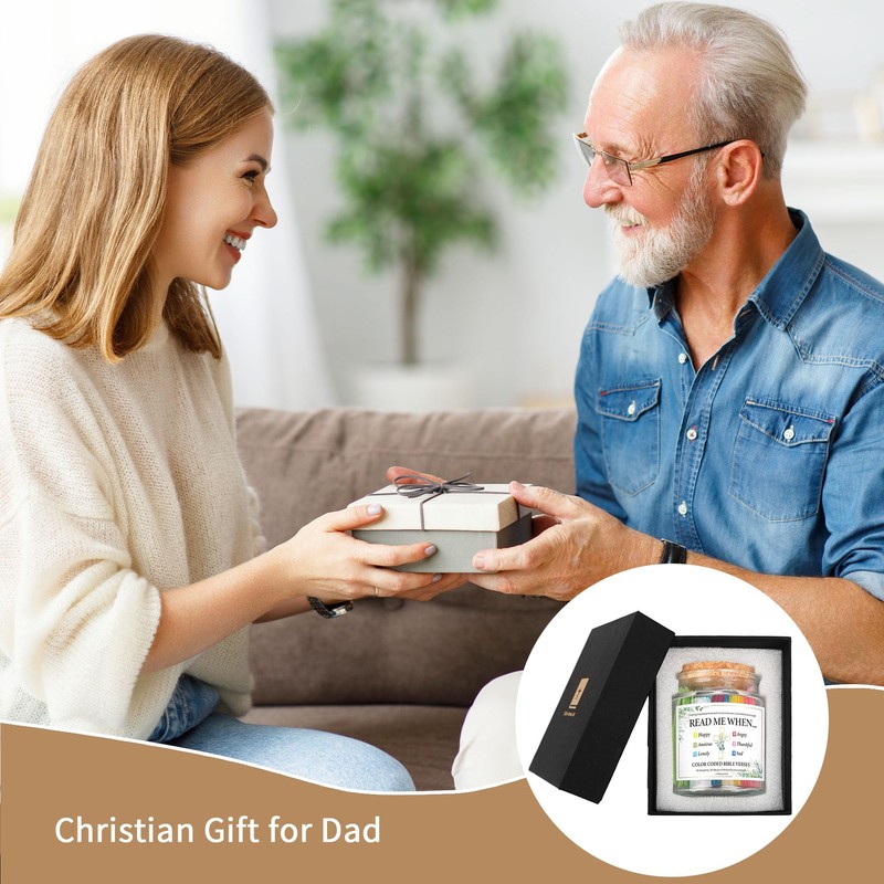 Inside the jar, you’ll find 108 carefully selected Bible verses, each color-coded to reflect different emotions—whether your dad is feeling happiness, anxiety, loneliness, anger, thankfulness, or sadness, there’s a verse to offer comfort and inspiration. This thoughtful collection is a daily reminder of God's wisdom and love for your dad.