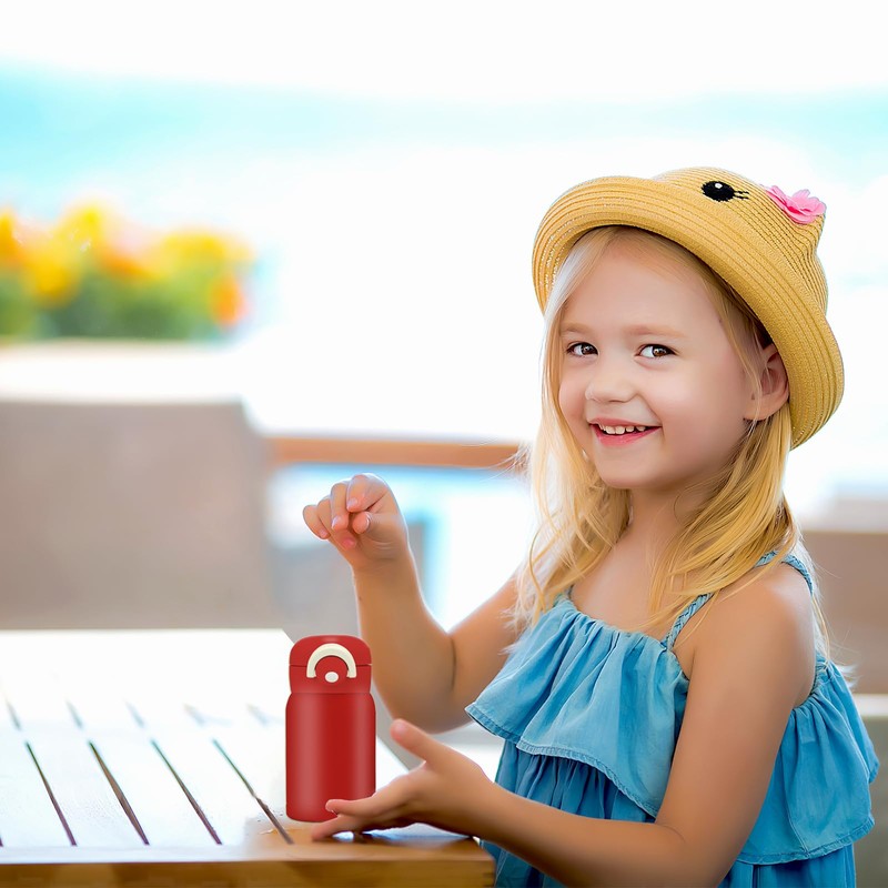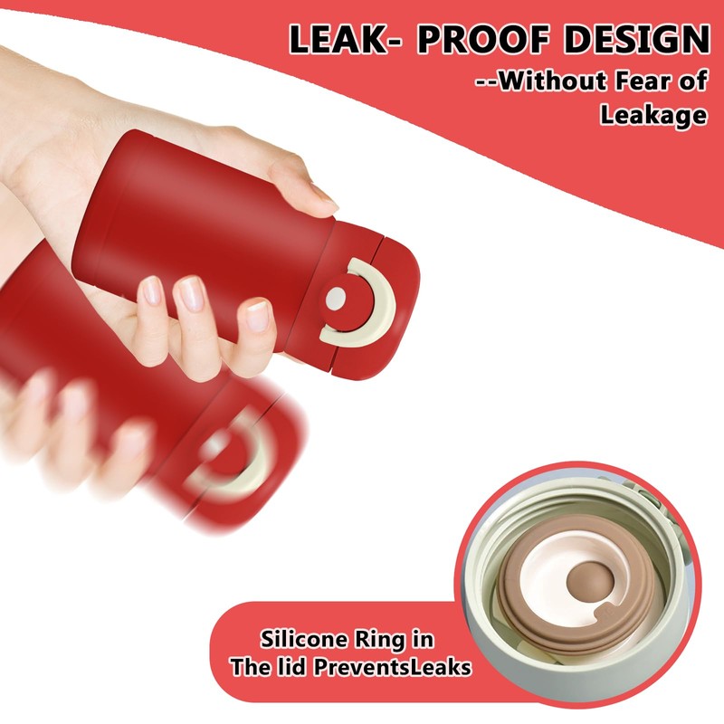 Boziee 350 ml / 200 ml Small Stainless Steel Thermos Flask Closure Lock Thermos Flask BPA-Free Insulated Flask Mini Vacuum Water Bottles for Sports, Travel, School, Outdoor (Cream Red, 200 ml)