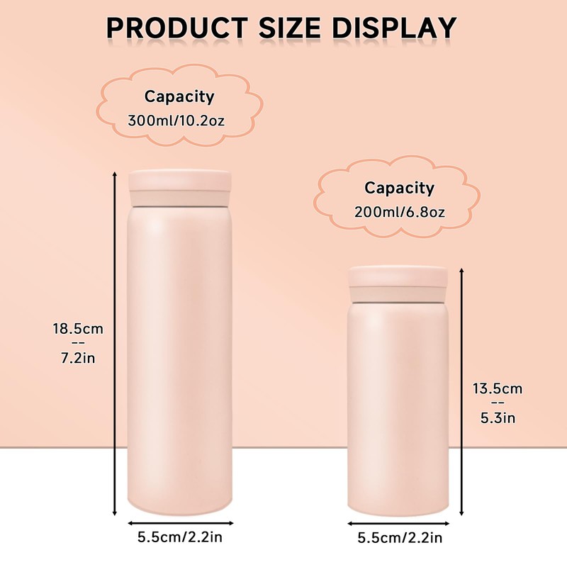 - Small size: this small stainless steel thermos flask is with 200 ml / 300 ml to choose from. and is perfect for travelling. Dimensions: 200 ml, 5.5 cm x 13 cm (W x H), 300 ml, 5.5 cm x 18 cm (W x H)