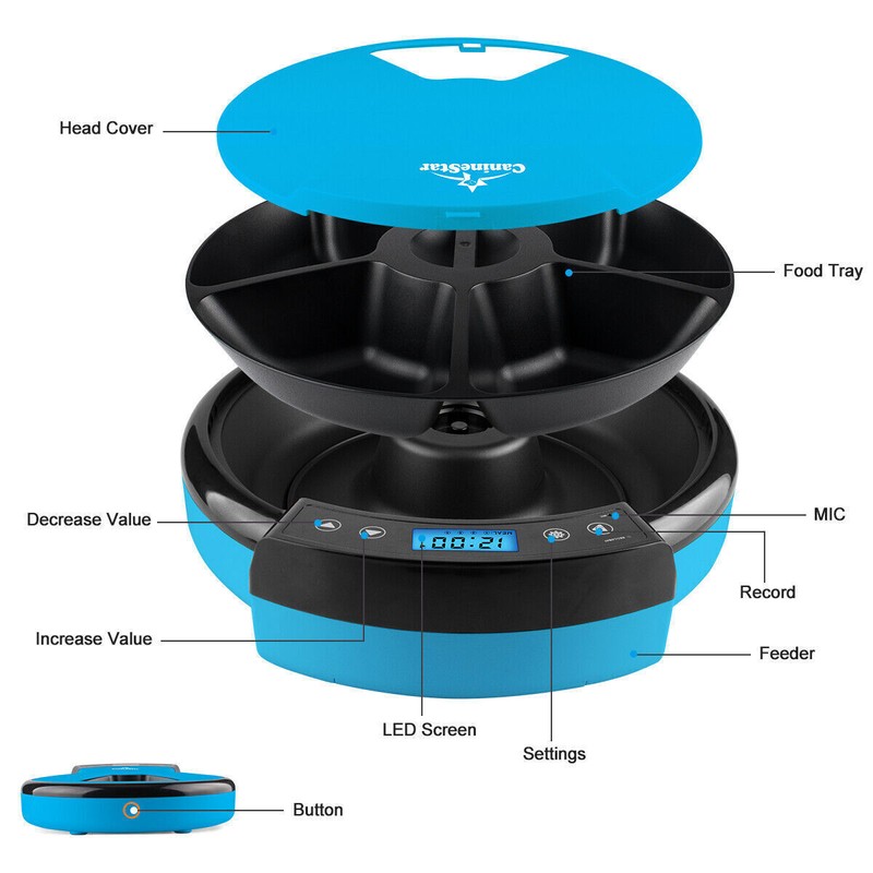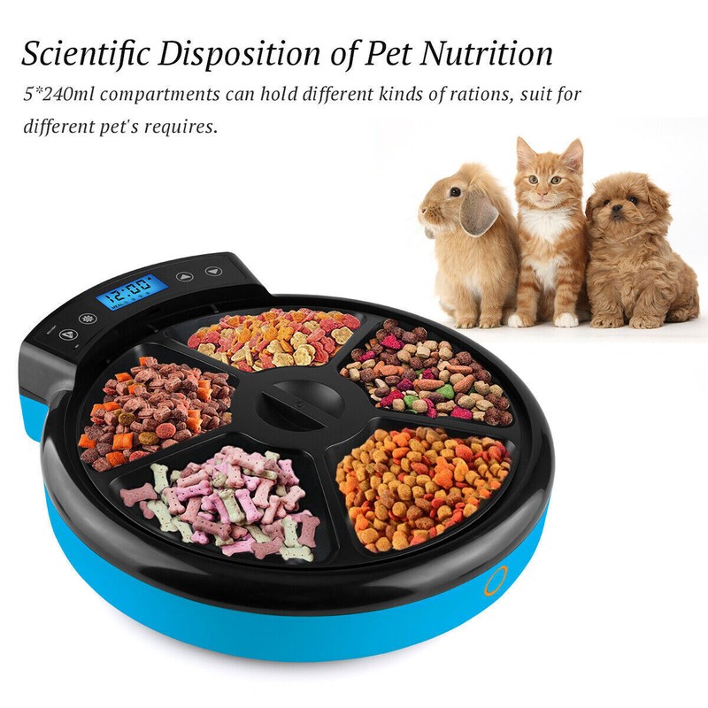 BPA-Free, Programmable 5 Meal Automatic Pet Feeder Digital Food w Voice Recorder for Small Dog, Cat