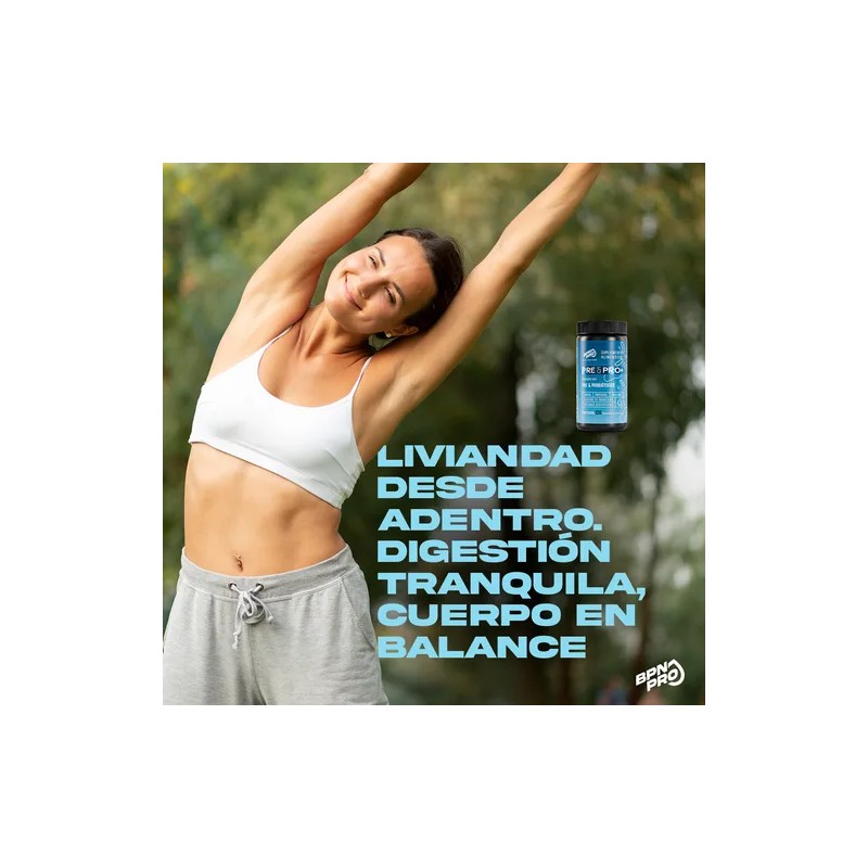 BPN PRO Pre & Pro+ es un suplemento nutricional completo que combina probióticos multicepa (40 billones UFC), prebióticos naturales, enzimas digestivas y superingredientes como inulina, papaya, lipasa y vinagre de sidra de manzana. Diseñado para mejorar la digestión, reducir la hinchazón y optimizar la absorción de nutrientes, este producto es ideal para quienes buscan bienestar digestivo diario.