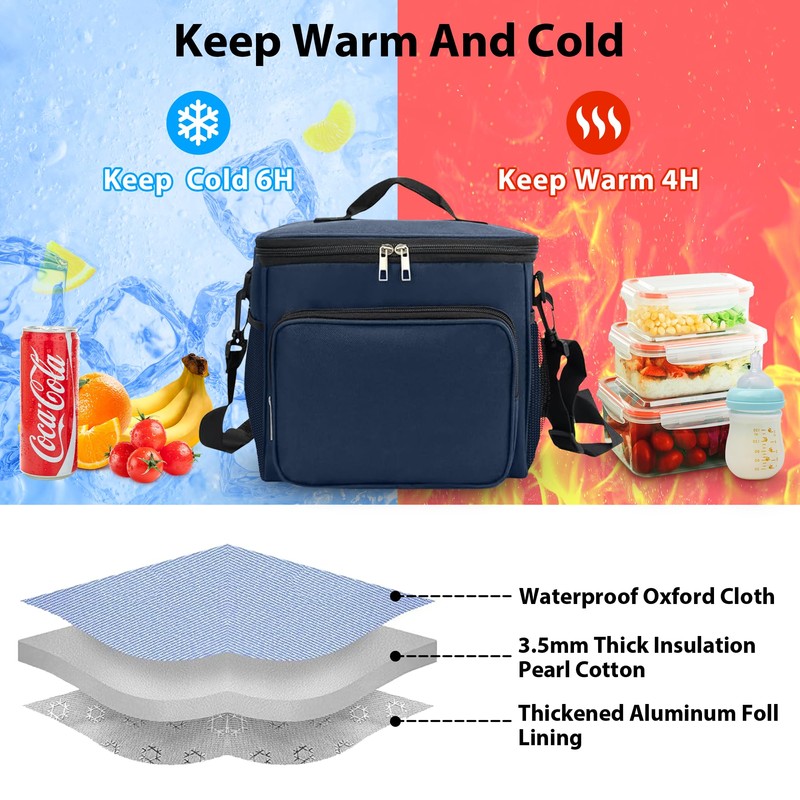 - 【Great Insulation Performance】The insulated lunch bag is made of premium 600D Eco-friendly Oxford fabric + 3.5mm thick EPE foam+ thickened aluminum foll lining, 3 in 1 design and insulation material to ensure optimal insulation, keeping your food cold, hot, fresh for up to 6 hours and is durable easy to clean and easy to carry