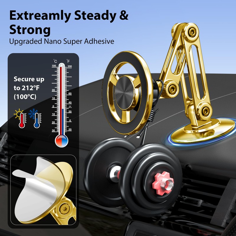 - 𝐔𝐩𝐠𝐫𝐚𝐝𝐞𝐝 𝐀𝐦𝐚𝐳𝐢𝐧𝐠 𝐍𝐚𝐧𝐨 𝐆𝐞𝐥: Dominate bumpy roads with our upgraded powerful nano gel technology, well grips dashboards/desks like welded steel, outperforming those competitors with weak adhesion. Survives extreme temps (-40°F to +300°F) and maintains strong and reliable adhesion without deformation or detachment. Removes cleanly without damaging the surfaces. No sticky residue like cheap adhesives. INCLUDES EXTRA GEL PAD, double your product’s lifespan instantly. No more gambling with flimsy suction cups or messy tapes!