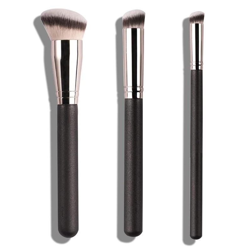 BPTRKOM Set of 3 Make-Up Brushes, Ideal for Creamy, Powdery or Liquid Foundation, Dense Synthetic Premium Brush Hairs, for Mixing Contour Liquid Cream Polishing Concealer (Black)