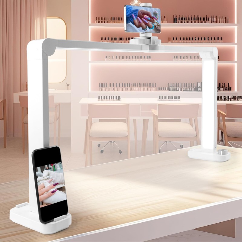 BQAN Nail Tech Lamp for Desk with Phone Holder, 33" 40W Foldable Table Lamp for Nail, Lash Eyelash Extension, Tattoo - 3 Modes 3000k-6000k LED Manicure Desk Light (White)