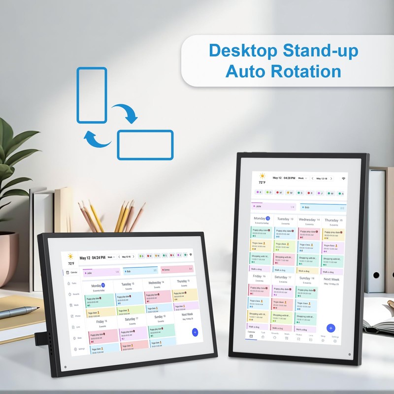 - 【Quich Setup&Seamless Calendar Syncing】Just plug in, connect to 2.4G/5G Wi-Fi, and sync your calendars in minutes. Compatible with Google, iCloud, Outlook, Cozi, and Yahoo. Add events directly on the device or through the eCalendar app. Exclusive member magic import function, send or forward PDF and other file formats or photos to the calendar email, and they can be automatically converted into calendar events and images, simplifying life.