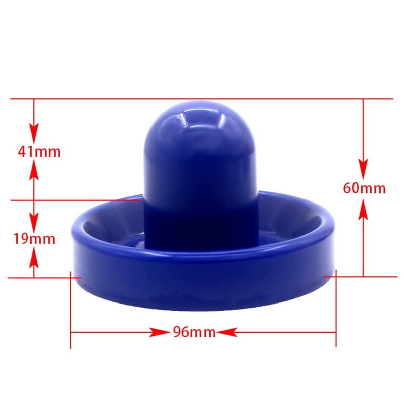 Size: Air Hockey Pushers 3.78" wide and 2.37" high, 8 air hockey pucks 2.52" in diameter