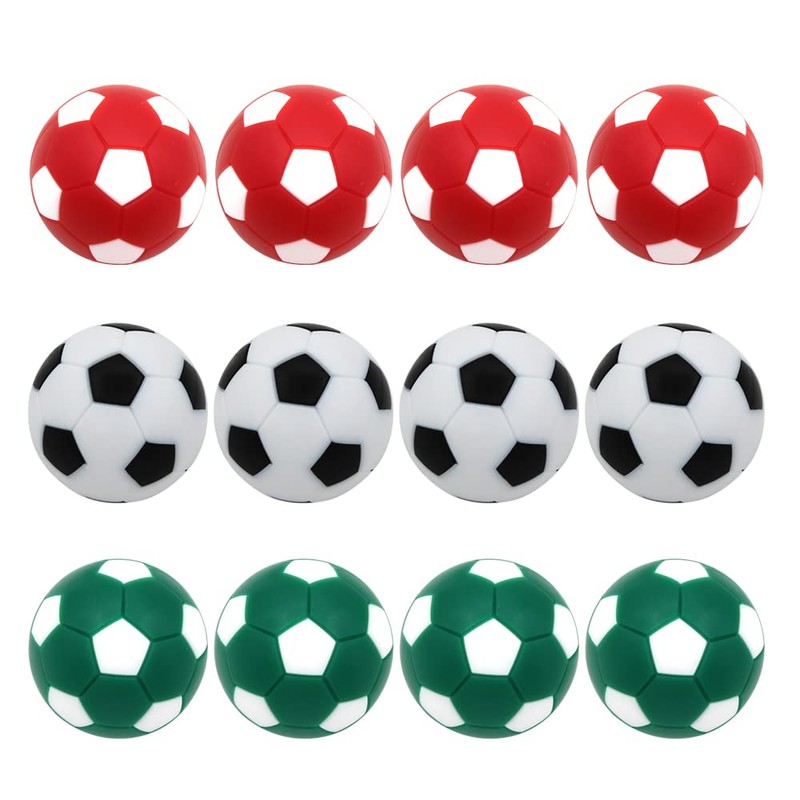 - Foosballs 12 pack set ,contains 4 pack red & white,the new bright red and white ball,4 pack black & White, 4 pack dark green & White Tabletop Soccer Balls.