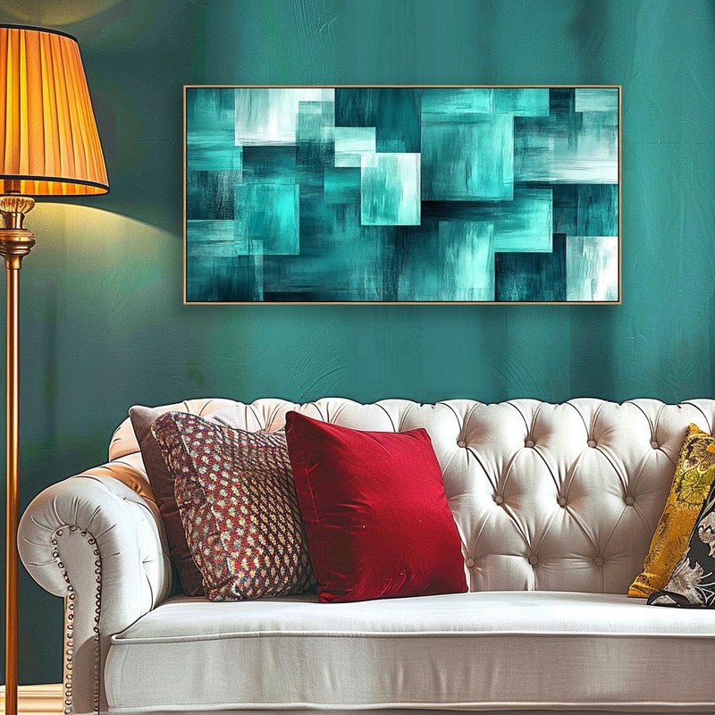 - 【COLOR PALETTE】: Combines various shades of teal, turquoise, and white in a layered geometric composition that adds depth to any room