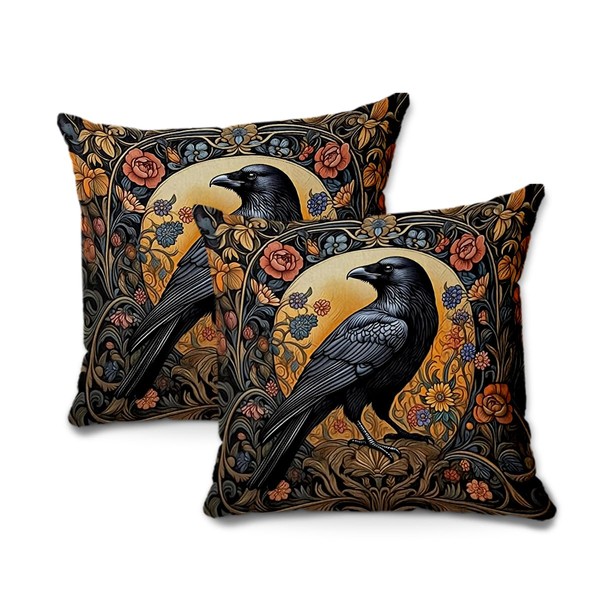 BQXH 2 Pcs Dark Aesthetic Raven Throw Pillow Covers 18x18 Inch, Artistic Floral Throw Pillows Square Cushion Covers, Stylish Decorative Pillows for Couch Sofa Living Room Bedroom, Raven Gifts