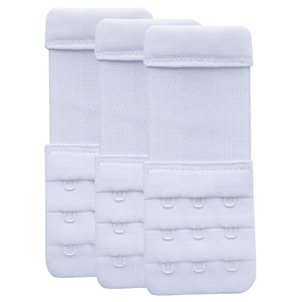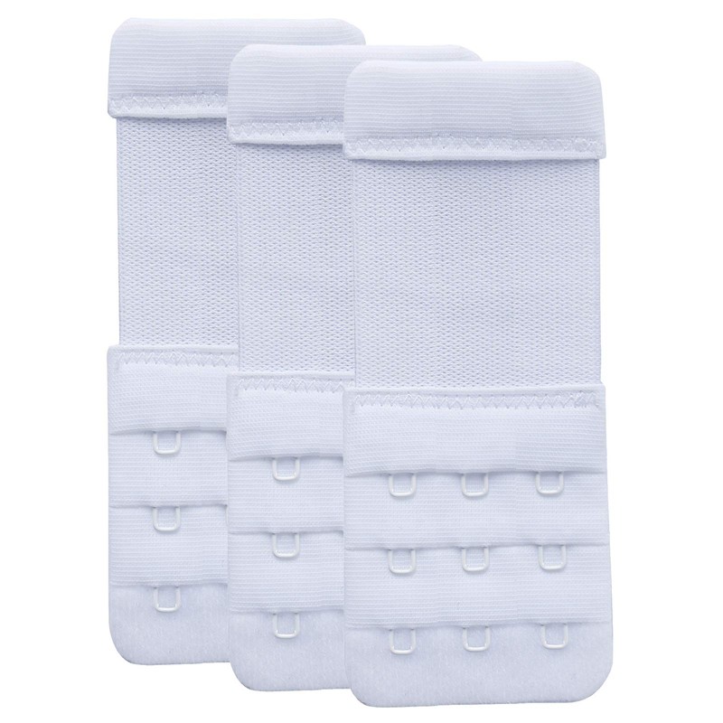 Bra Extender, 2 Hooks, Bra Extender, 2 Hooks, Elastic, Soft, Comfortable Bra Strap Extension, Pack of 3, White, 1/2 inch (1.3 cm) spacing