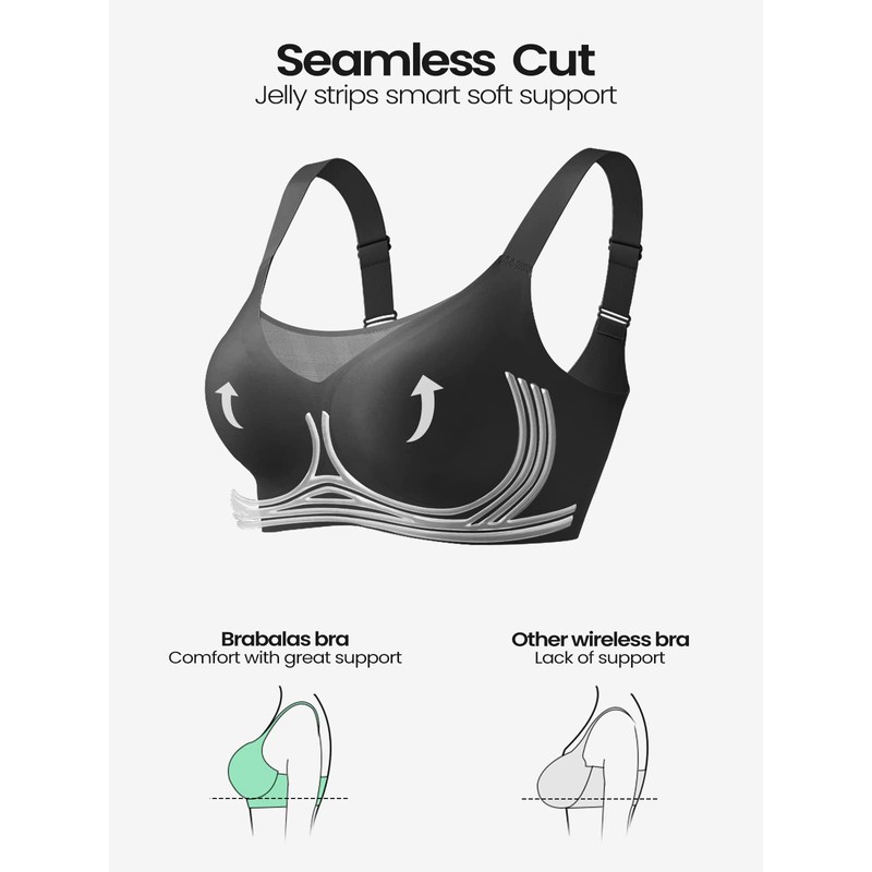 - Extremely Comfortable Wireless Bra - Brabalas wire-free seamless bra features ultra-comfortable material and the special Jelly Strips technique provides excellent support and lift to the bust.
