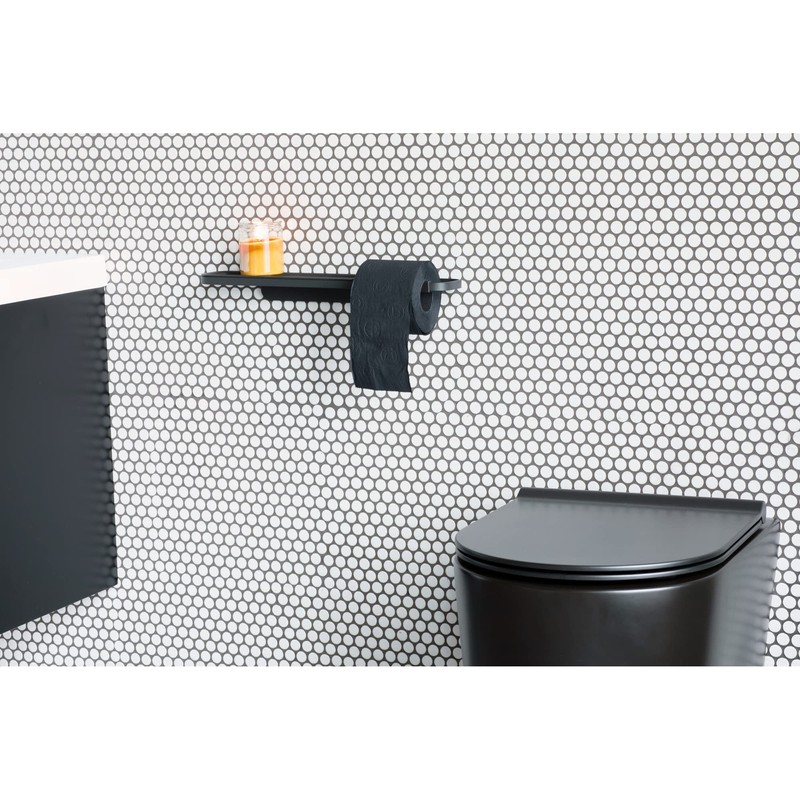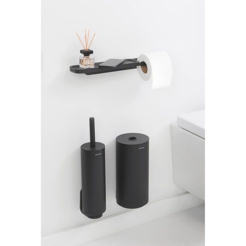 Brabantia Mindset Wall Mounted Toilet Roll Holder with Shelf (Mineral Infinite Gray) Wide Opening, Bathroom Tissue Rack, Anti-Rust Materials