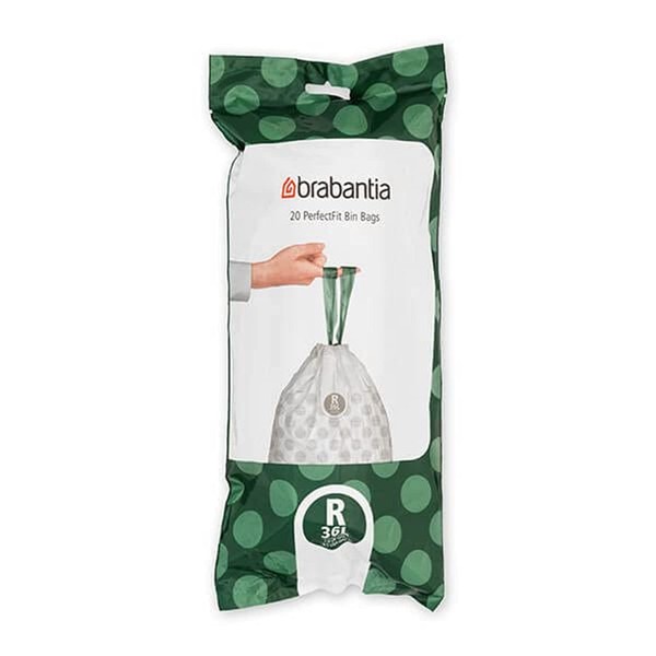 Brabantia PerfectFit Bags 36 L (R) - 20 per roll, bin liners, plastic, white, 36 L, 138508