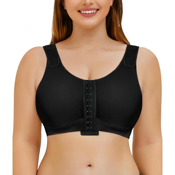 BRABIC Front Closure Compression Mastectomy Everyday Bra for Women Post Surgery Support with Adjustable Straps Wirefree Black