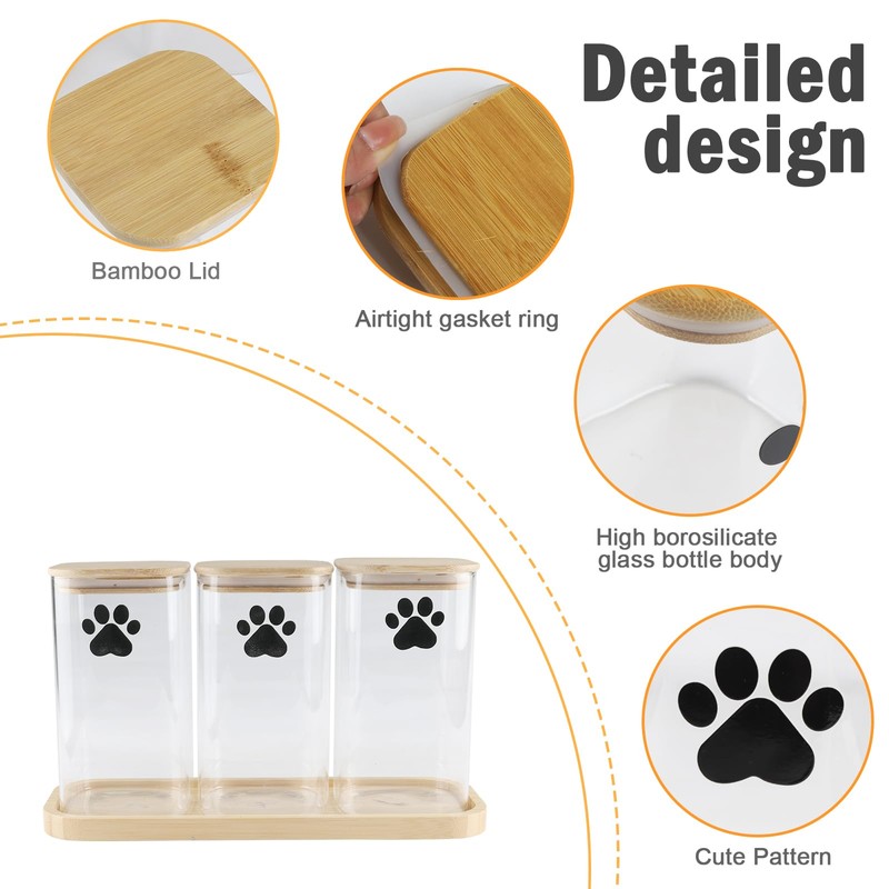 - 【Versatile Pet food storage】-Food safe glass Canister with paw prints.The square dog treat storage containers use wood lids and silicone sealing rings for a better airtight and moisture-resistant space to prevent the food from getting wet and gain longer freshness time. Perfect for pet treats,dog treats,cat treat,dog cookie,dog biscuit,dog kibble,dog jerky.