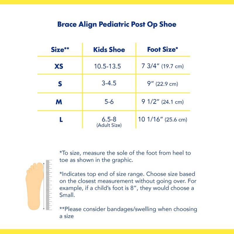 Brace Align Pediatric Children’s Square Toe Post Op Shoe For Kids and Youth- HCPCS L3260- For Broken or Fractured Foot or Toe, Post Surgical, Soft Tissue Injury- Left or Right Foot