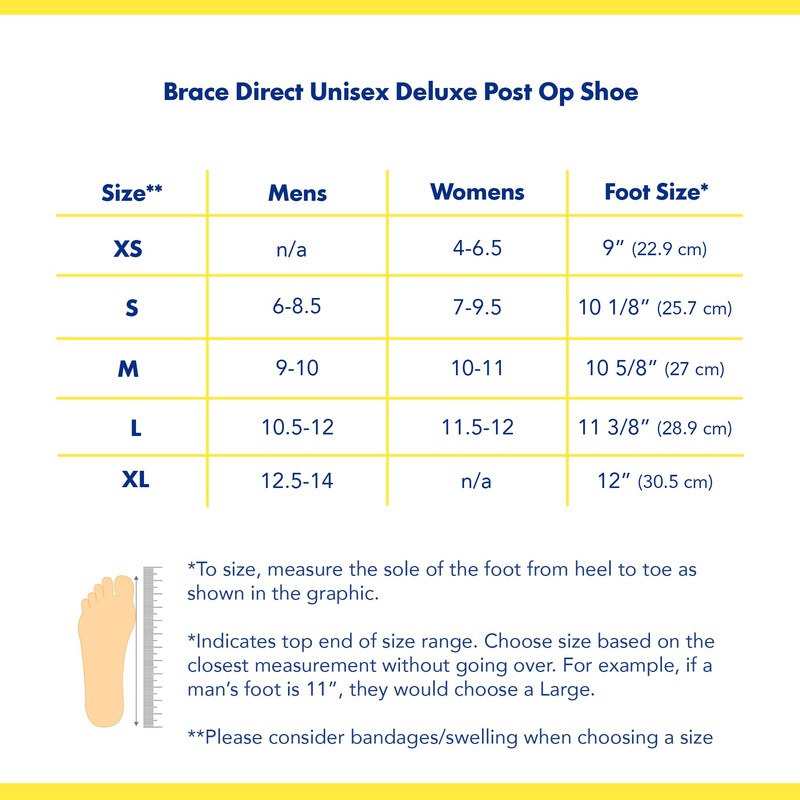 Ideal for recovery from conditions like broken toes, stress fractures, bunions, hammer toes, and more, the Brace Direct Deluxe Post-Op Shoe is your trusted companion for a smoother and more efficient healing journey.