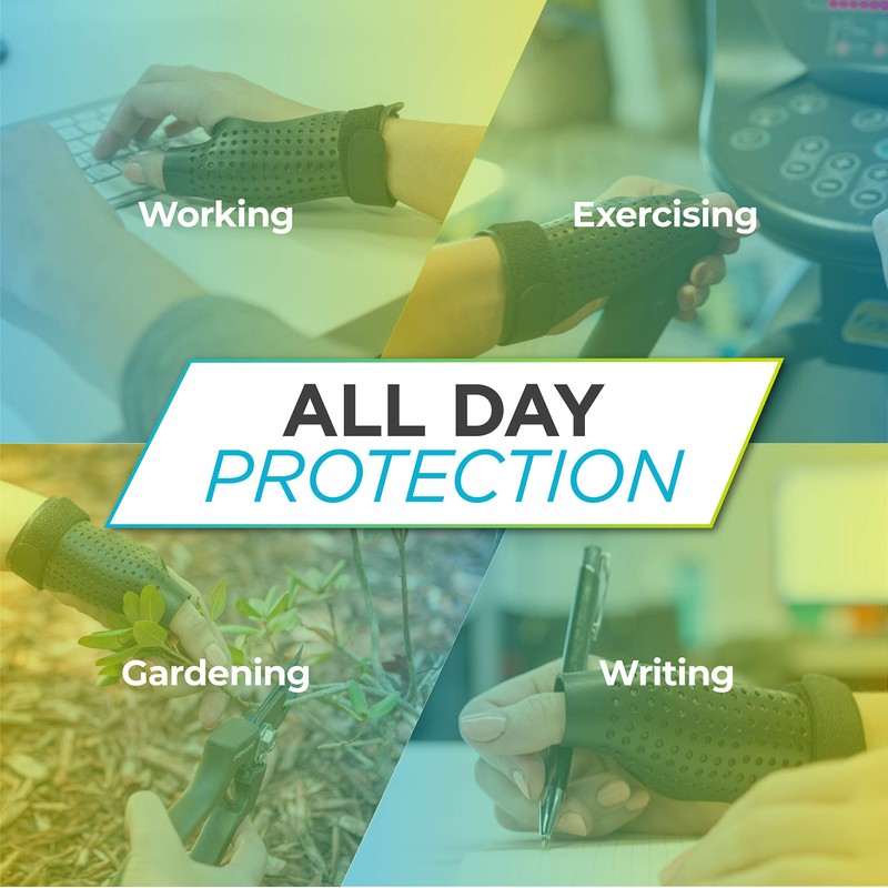 - Brace prevents thumb flexion and extension, helping alleviate pain associated with post-op recovery, arthritic thumbs, De Quervain’s tenosynovitis, gamekeeper's thumb, skier’s thumb, osteoarthritis, trigger thumb, ulnar collateral ligament (UCL) injuries, fractures, dislocations, sprains, etc.