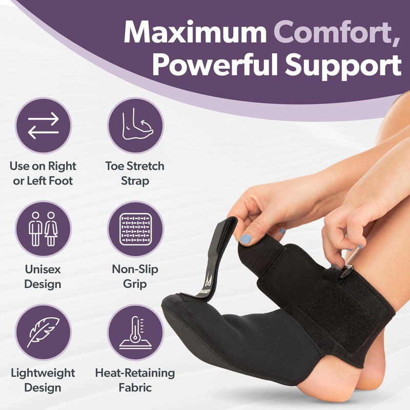 - LOW-PROFILE BRACE – Getting used to sleeping with your foot in dorsiflexion will take some time, however, this lightweight night splint sock for plantar fasciitis therapy is likely easier to get used to than sleeping with a rigid plantar fasciitis boot.