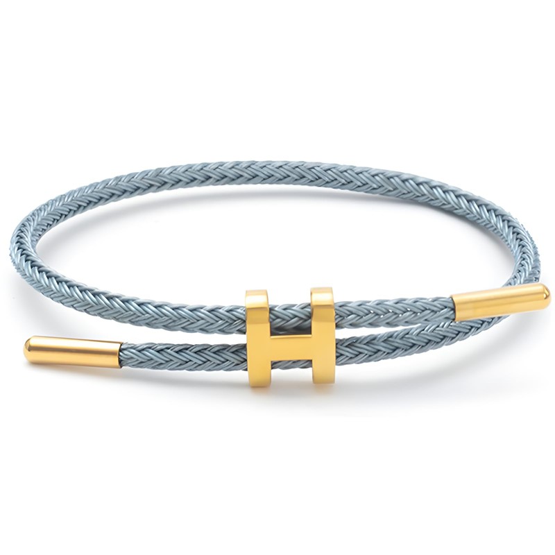 Bracelet with Adjustable Design Polished H Shape Buckle, Bracelets for Women, 18k Gold-plated Buckle Design Titanium Steel Wire Rope Women's Gift Jewelry, Large, Titanium, no gemstone