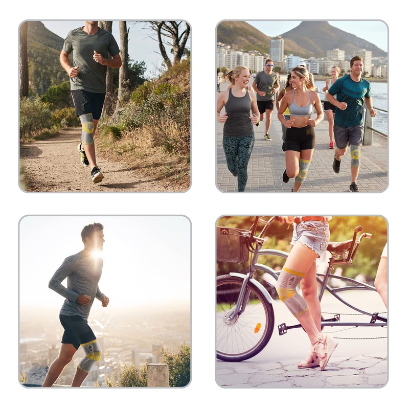 • 特殊織り製法: 平織り製造により、膝の後ろに軽く通気性のある織り、大腿四頭筋、ハムストリング、ふくらはぎ領域に柔軟な伸縮性、高性能ステッチが膝蓋骨を囲んで支え、サポート。