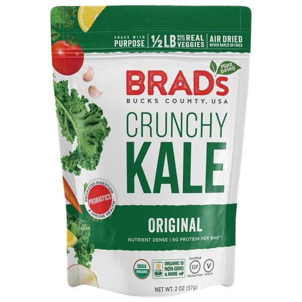 - Snack with Purpose: At Brad's, we believe that what you eat impacts how you feel; Try the full range of healthy, vegan and gluten-free raw snacks including Crunchy Fruit Kale, Crunchy Kale and Veggie Chips