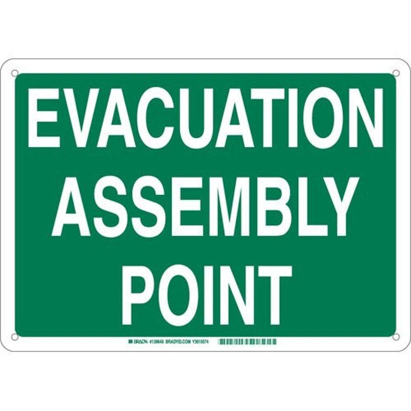 Brady 139655 Aluminum "EVACUATION ASSEMBLY POINT" Sign, Text, 10" H x 14" W, White on Green