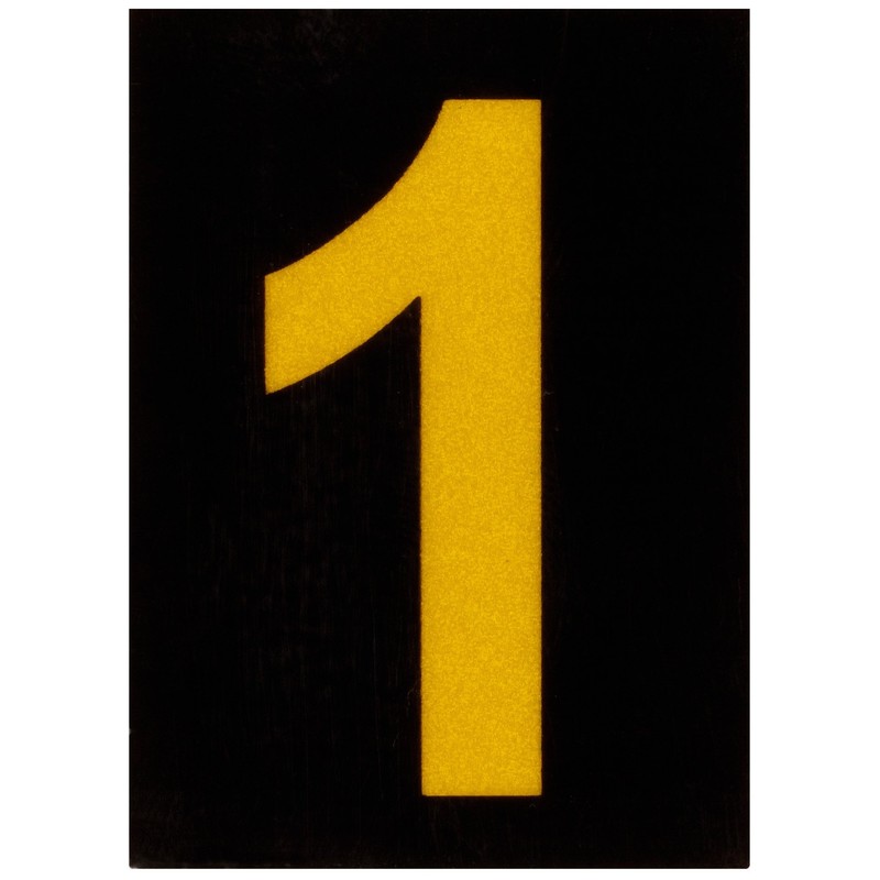 Brady 5890-1 Bradylite 1-7/8" Height, 1-3/8 Width, B-997 Engineering Grade Bradylite Reflective Sheeting, Yellow On Black Reflective Number, Legend "1" (Pack Of 25)