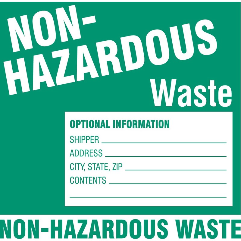Brady 60447, Hazardous Waste Labels, 6" Height x 6" Width, White on Green, Legend "Non-Hazardous Waste...Etc" (100 per Package)