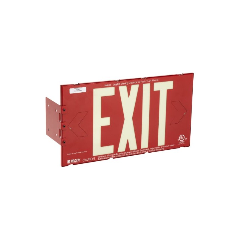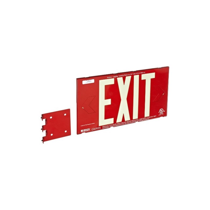 Brady 90840B BradyGlo 8" Height, 15" Width, B-355 Photoluminescent Red Color High Performance Photoluminescent Exit Sign