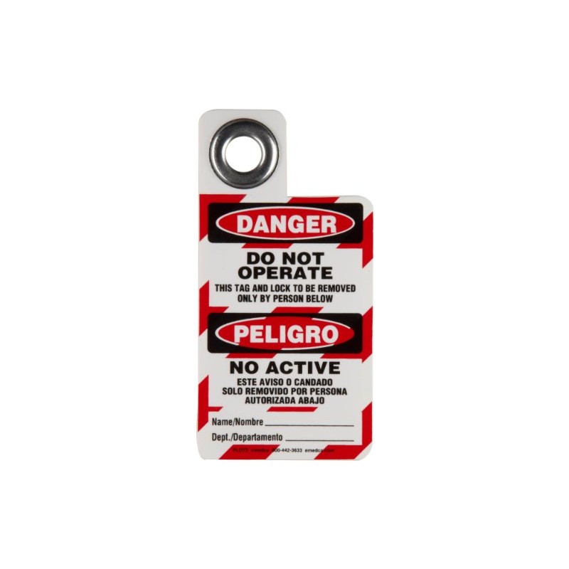 Brady English/Spanish Padlock "Danger - Do Not Operate" Tag, Vinyl, 3" Height, 2" Width