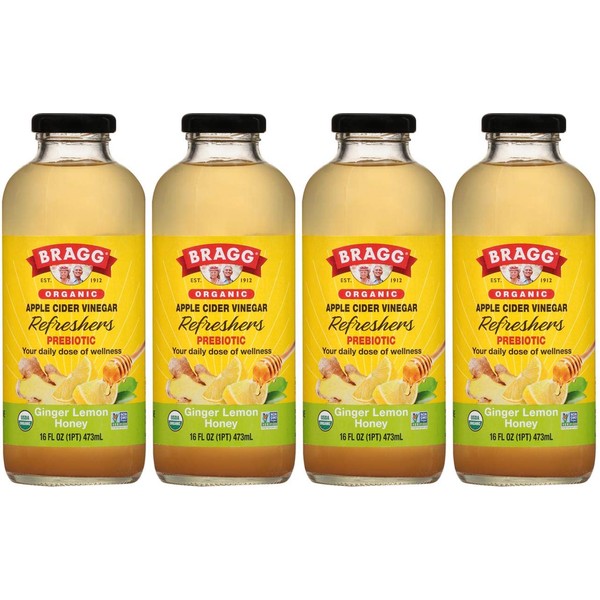 Bragg Apple Cider Vinegar, Ginger Lemon Honey, 16 fl oz (Pack of 4)