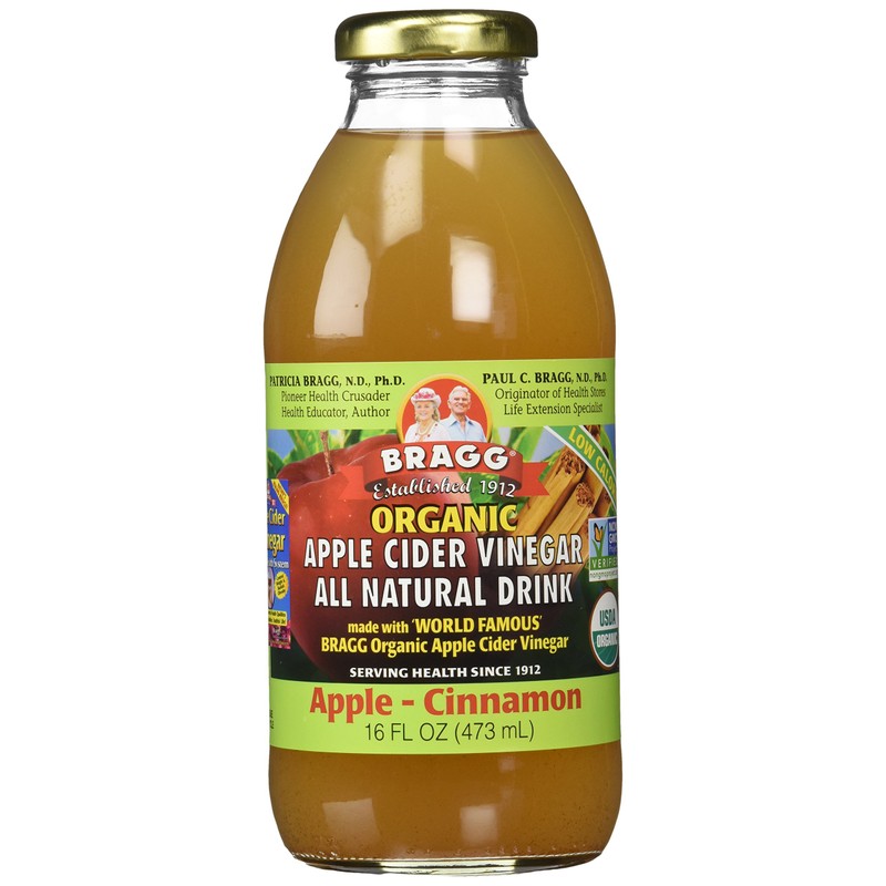 Apple cider vinegar has been highly regarded throughout history. Now you can enjoy bragg organic apple cider vinegar in a convenient refreshing drink.*certified organic by organic assurance international in accordance with the usda organic standardsgluten freecountry of origin : united statesis gmo free : yesis kosher : yesorganic : 95%+ organicsize : 16 fzpack of : 12selling unit : caseingredients : pure distilled water;organic apple juice;bragg organic apple cider vinegar;organic cinnamon and organic stevia extractkeywords : cinnamon;kosher;organic;stevia