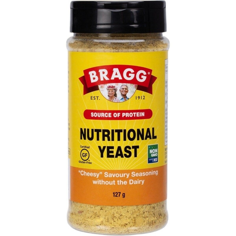 Enjoy rich, cheesy flavour without any dairy with Bragg Seasoning Nutritional Yeast. Often called “Nooch,” this popular seasoning delivers a savoury, cheese-like taste while providing complete vegan protein and 6 essential B vitamins. It is a simple and delicious way to enhance your favourite meals while adding a few extra nutritional benefits.