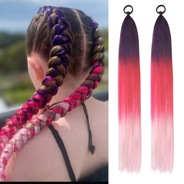 Braid Ponytail Hair Extensions with Elastic Tie,2 Pcs Straight Braid Hair Extension Rave Hair Natural Soft Hairpieces Synthetic Ponytail Extension 26 Inch(C25)