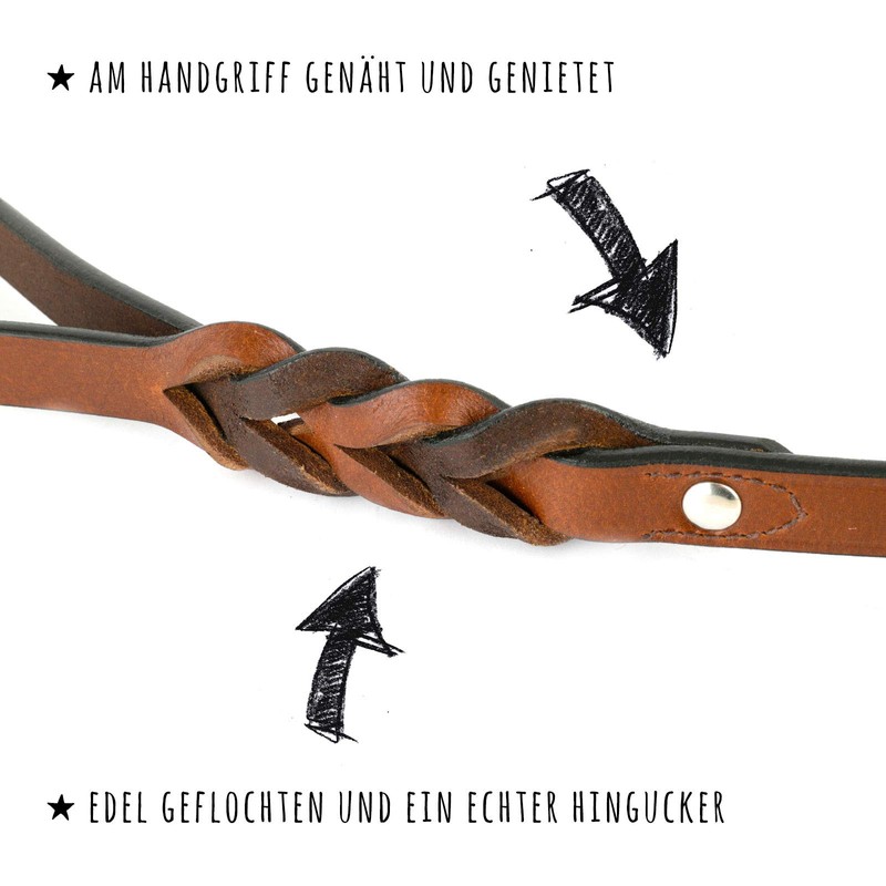 Braided Dog Lead in smooth cow leather in brown and at the end – Single – Leaders Lead – Very Good Quality, brown